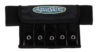 Made to carry your buck-tails and tins in its 5 individual slots. The holster is ideal for use with the Aquaskinz carry system on your belt, kayak or small craft.