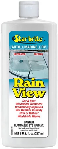 Star Brite Rain View Car & Boat Windshield Treatment improves wet weather visibility through windshield and windows.