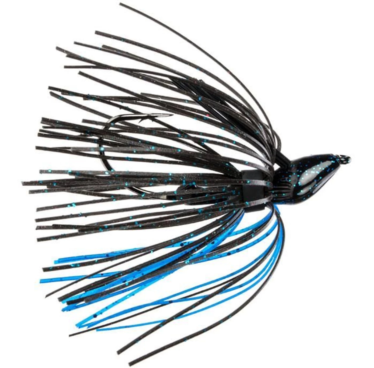 The design of the Structure Jig and the Baby Structure Jig is to increase the hook up ratio and decrease the tendency to hang up versus traditional jigs used for structure fishing. The special Owner 2X strong Cutting Point hook has a Zero degree line tie for a straight pull with the hook point for better penetration, the unique Cobra Head’s position puts less material in the hook gap for a better bite and its tapered nose helps reduce lip blow out. The Cobra Head shape and weedguard angle reduce hang ups and the wide bottom footprint of the head help increase feel of the bottom. All this combined to make the Denny Brauer Structure Jig the best jig you can cast to structure, hook up and land the big ones!
