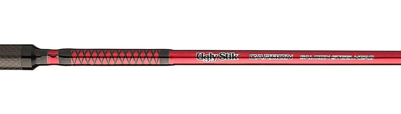 Boasting an all-new 100% graphite construction, the Ugly Stik Carbon Salmon/Steelhead Spinning Rods are lighter than ever before while still retaining the legendary Ugly Stik toughness. The new blank construction on Ugly Stik Carbon series rods offers crisp actions, heightened sensitivity, and significantly reduced weight for all-around better performance and an enhanced fishing experience. Best of all, these new and improved Ugly Stiks still offer the tremendous durability that the brand has always been known for. The Ugly Tech construction blanks, along with the Ugly Tuff single-piece stainless steel guides and carbon fiber handles ensure this high standard of toughness is not only met, but exceeded.